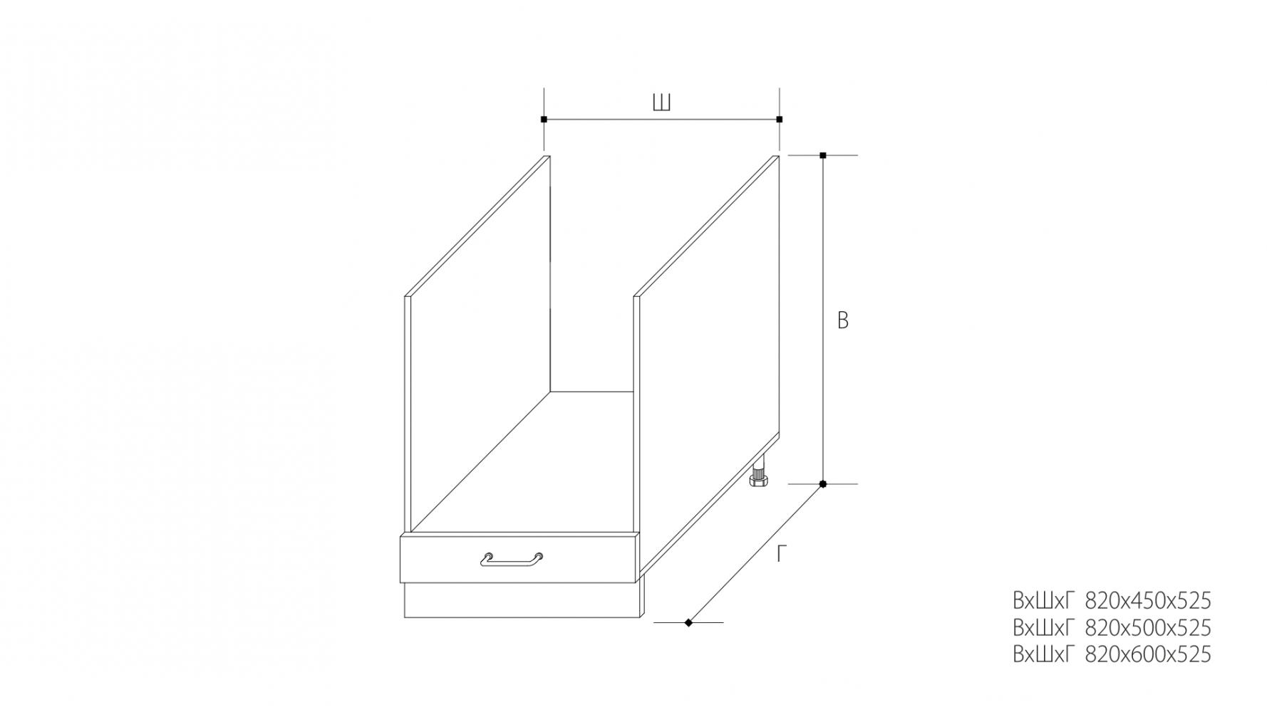ВхШхГ: 820х500х525 мм.
